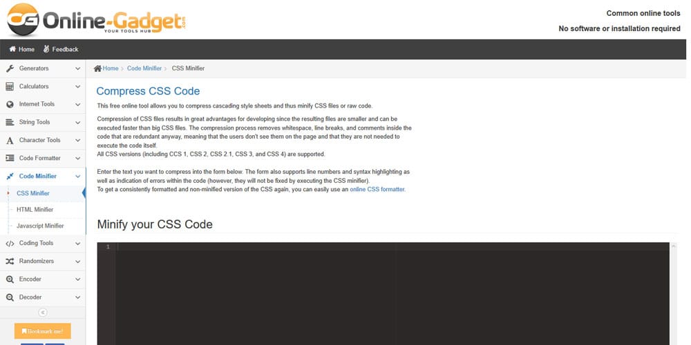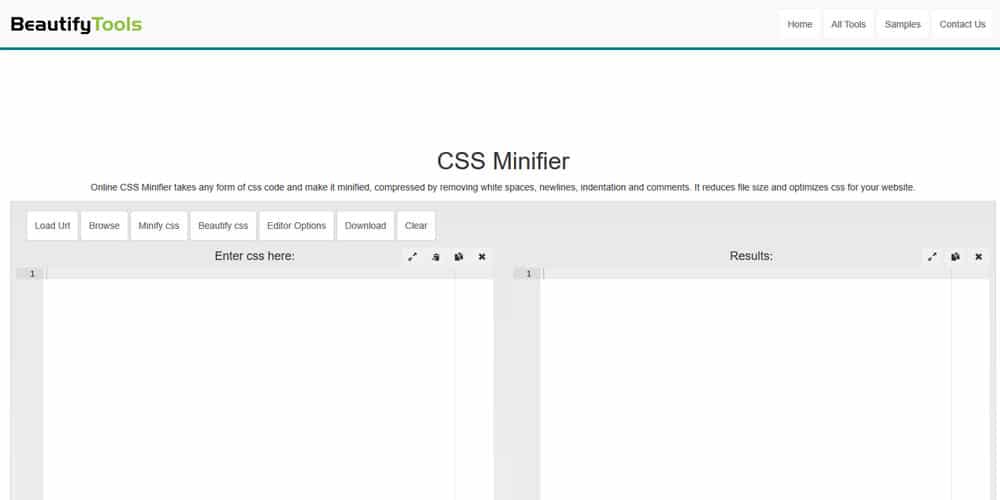 ПерейтиОнлайновый инструмент CSS Minifier и Compressor. Он сжимает или уменьшает код css, чтобы сделать сайт более быстрым.