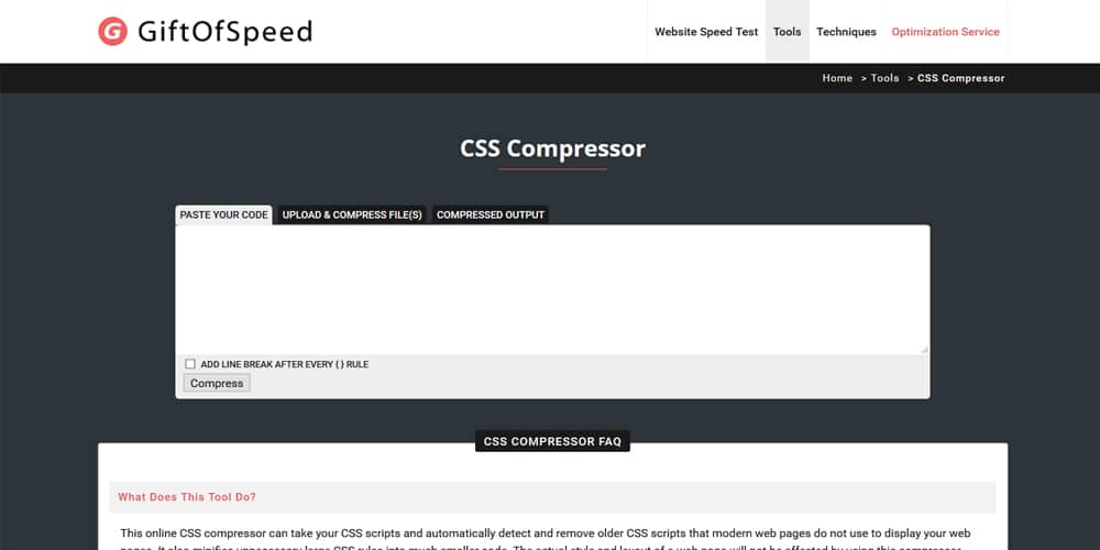 ПерейтиОнлайн-компрессор для файлов CSS, чтобы уменьшить размер файла, получить низкое время обработки и увеличить скорость загрузки сайта.