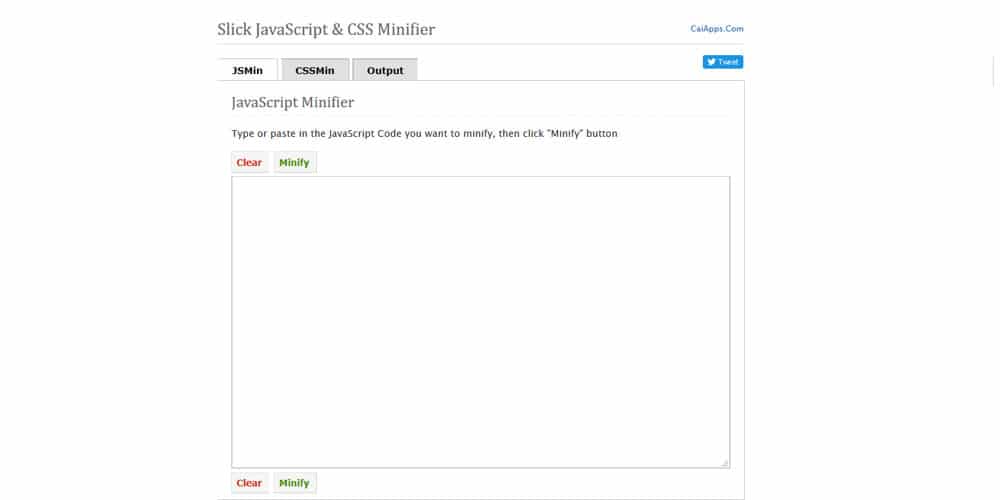 ПерейтиЭто веб-интерфейс для минимизации JavaScript, CSS и HTML. Этот инструмент использует UglifyJS 2, Clean-CSS и HTML Minifier.