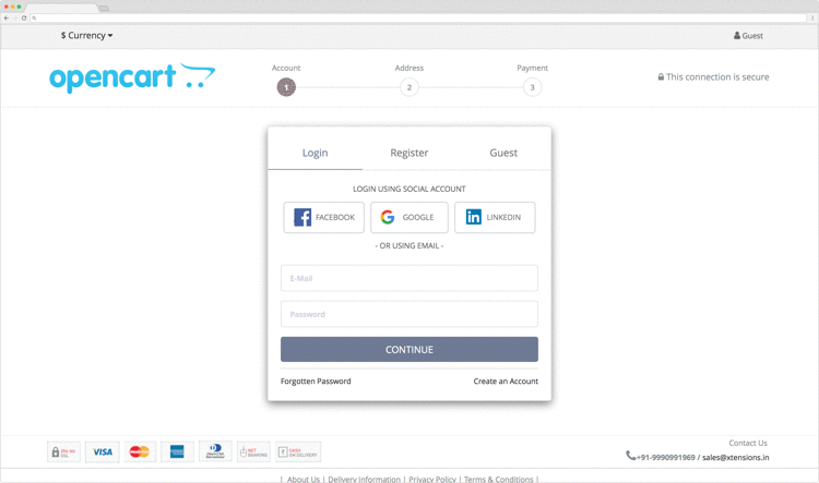 The best selling step checkout extension on opencart. It is modern, fresh, responsive and stands out from onepage checkout extensions. See demo and decide yourself.