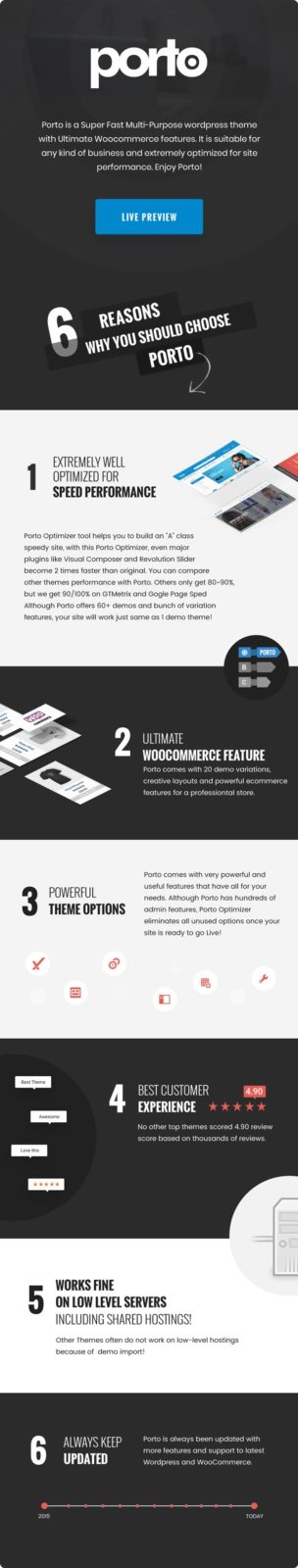 Porto WordPress is an ultimate business & woocommerce wordpress theme that is suitable for any business and woocommerce sites. Porto provides plenty elements and powerful features that can configure all you want. Compared to other multi-purpose themes’ general ecommerce features, Porto provides ultimate woocommerce features with exclusive skins & layouts and features. Porto guarantees super fast performance which is essential for your business & woocommerce shops. Please check below to see more features from Porto. Enjoy Porto Business & Woocommerce Theme!