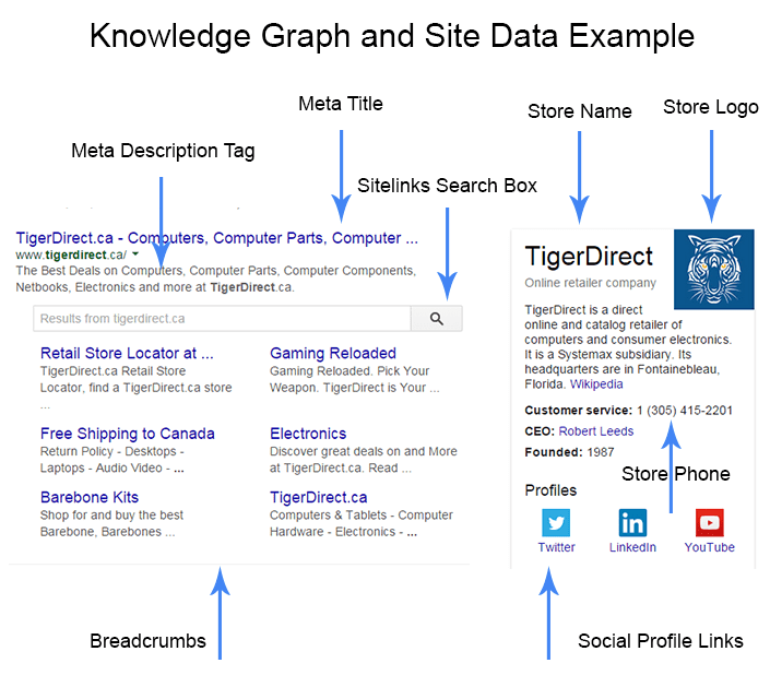 The Knowledge Graph data for your site such as site name, logo, url, customer support phone,